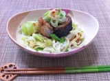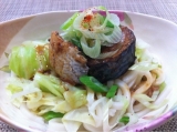 ③(茹で上がり2分前くらい)フライパンでベーコンをこんがり焼く