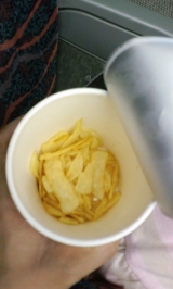 株式会社フレンテ(湖池屋)から新発売したポテのんというお菓子★生のじゃが芋を使って、ノンフライのヘルシーなお菓子なんです♪味はトマトサラダ味とリッチコンソメ味の2種類小さなカップラーメンの容器みたいな入れ物に入っています中身はこんな感じ!(ちょっと食べて減ってしまってますが)細切りでギザギザした感じのポテトです食べてみると‥がすっごくカリカリ!!ノンフライだから、手もベタベタしないんですトマトサラダ味はイタリアンな感じで、トマトパスタの味がして美味しい♪リッチコンソメ味もコンソメの味がしっかりしていて、これまた美味しいです♪一見、中身は容器に対して少ない??と思いきや、ノンフライで独特のカリカリ食感なので、すごく食べごたえがあるんですだから、ちょっと小腹が減った時ダイエット中でもお菓子が食べたい時ヘルシーだから子供のおやつになどなど、食べ方は色々ですカロリーは105Kcalと少ないので、ダイエット中でもオススメできるんです★子供や友達、家族にもあげたんですが、みんな美味しいと言って、ぺろりと食べちゃってましたカロリーも控えめだから、罪悪感なしで食べられちゃうのがいいなーしかもノンオイルでも美味しいのもぽいんと高いです♪これ、すごく気に行ったので、リピートで買っちゃいそうです気になった方はぜひ食べてみて欲しい商品です♪湖池屋&フレンテモニプラファンサイトファンサイト参加中 続きを見る ['close']
