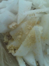 海の精ショップファンサイト応援中浅漬けの素っていえば液状のものが主流のような気がしますが、粉末タイプもあるときき、興味を持っていましたそしたら運よくモニターする機会を得ました先日ご紹介した豆腐用のお塩と同じ会社、海の精さんの商品です^^中身は銀の小袋で小分けされていますこの小袋1袋につきカット野菜100〜200gに混ぜ、(100gの目安はかぶなら中1個、なす中1個強、キャベツなら葉大2枚、大根なら暑さ3センチ)30分〜1時間ほどおきます一日おくと乳酸発酵が進み、耐えごろは3日くらいまで野菜の量をもっと増やすと漬け具合が甘くなって、サラダとして食べられます♪うちはお弁当をほぼ毎日作っているので、ちょっとだけ浅漬けが欲しい時に便利に使ってます素はこんな風に茶色っぽい粉末こうやってかけてあとはもみもみ30分で出来ちゃうあたりがまたお弁当作りの時にありがたいのですこのお弁当の時にも使ってます★真面目にお塩を作ってる海の精さんの商品なのでミネラルバランスもとても良いはず!塩気だけじゃなく、だしやみりん等の調味料もこだわって作られてますよぜひ一度試してみてくださいな 続きを見る ['close']