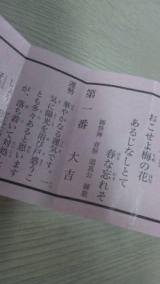 リベンジだおみくじリベンジなのだ!!!初詣は、カウントダウン10分前におうちを出発し、大阪市福島区にある福島天満宮ですましていた近所やでそこの幼稚園に通ってたでで、2011年第1回おみくじ大会(おみくじ引く時は大会と言う)をしたが、「末吉」という微妙なのを引いてしまった別に悪くないけど、最後は良くなる的な?2011年下半期がよい的な?くやしいですっ!あの元旦から、ずっとモヤモヤしていたここ数年、大吉ばかり引き当ててきた私が末吉なんかに振り回されている現実言い過ぎよしもっかいおみくじ大会を開催させようではないか!そうだ!太宰府天満宮へ行こう!スッピン眼鏡腐主婦は小雪が舞う中、鼻汁タラタラで行った拝むの早すぎるぞ!T氏!ちゃんとならんでからだ!無事に参拝し、おまもりを見になぜか、安産のおまもりを買おうとするT氏「えっ?なんで?」「赤ちゃんできるかもよ」「まだお腹にいないのに、安産って関係ないやろ」「関係あるって!」「いや、関係ないやろ!」これを何度も繰り返し、絵馬を書くって事でなんとか落ち着いた「やっぱ一家の大黒柱が代表して書かなねよっ!稼ぎ頭!」本心(手がかじかんで、書きたくなかっただけ)「きったねぇ字!マジかよ!」漢字を使いなさいよ「ブログにのせるなら、もっとキレイに書いたらよかった」そんな問題じゃねぇよまぁね君の気持ちは神さんに伝わったと思うよ肝心の2011年第2回おみくじ大会!!!緊張のおみくじ選び「フッこれだな」キタ(゚∀゚)!!!さすが私やな無事に「大吉」ゲットだぜ!よくわかれへんけど、第1番やし無事に閉会できてよかったテレビでも言ってたけど、おみくじは何回引いてもいいんやって残念な結果だったみなさんも、ぜひおみくじリベンジを!帰りは太宰府天満宮の名物「梅ヶ枝餅」をば参道にいっぱいお店があって、どこのを食べようかいつも悩む今回は、2番目に行列ができてた「きくち」で1番行列できてたお店は、行列長すぎたので断念そこまでしてねぇ奥さん寒いですしやっぱうんめーなー!甘さ控えめなあんこ、中はモチモチ、皮はパリッ1個じゃ足りへんわー!やっぱ焼きたてが美味しいよねあれは「なんであたしを連れて行かない」モニター応募中っぺ"あったかソックス"で寒い夜もぐっすり♪ おやすみフットウォーマーモニター募集マジっすか!?靴下履いて寝たらダメって聞いたのに、履いて寝てもいい靴下!?マジっすか!? 続きを見る ['close']