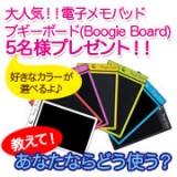 rel="nofollow">お題に答えて、今話題の電子メモパッドブギーボード(5名)をもらっちゃお!! ←参加中すごく便利なモノがあることをはじめて知りました!!電子メモパッド ブギーボードというのですが、感圧式液晶を採用することにより、付属のスタイラスペンや指先(爪)などでパネルに描画が可能本体上部にある消去ボタンで一瞬に消去が出来る便利な電子メモパッド感圧式液晶は消去時以外に一切電力を消費しない設計となっているので、大変エコな製品です!通常のタイプならマグネットをくっつけて、冷蔵庫にペタっと貼っておいて誰でもメモがかけるようにしておくと便利だなーっと思いました 「おやつは、れいぞうこの中だよ」 みたいな♪いつもは紙をセロテープにくっつけてペタっとしているので今回はバインダーバージョンとのことなのでこれはぜひ今センター試験で大変な受験生のみなさん!!バインダーにはさんで、重要なことを書いておくもよし!ノート代わりに使うもよし!薄型なので持ち歩きに便利なのがいいですねー私なら大きめの手帳をつかっているので挟んで持ち歩きたいですミぜひ使ってみたいですよろしくお願いいたします! 続きを見る ['close']
