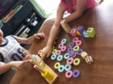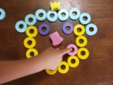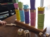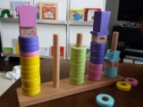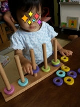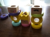 夏休み真っ最中 我が家で大人気のこのおもちゃで子ども達は元気に遊んでいます 木製こども家具とおもちゃのお店「ウッディプッディ」の 『リング10 つみきの王国』内容物はこちら↑↑↑ 子どもの手のひらに乗るぐらいのリングが50個 サイコロが2つ お顔のパーツと帽子が5個ずつ 紐が2本 スタンドが1個 対象年齢は1.5歳から 木のやさしさが伝わる、天然木のおもちゃです 成長に合わせた遊びが30種類以上! 「色分け、順番の理解、数や量の一致、指先遊び、ゲーム」など、様々な遊びができて、賢く長く使える本格知育玩具です 我が家の子ども達もたくさんの遊び方を考えて楽しんでくれました リング10つみきの王国♪その一♪にて動画を二本ご紹介しています→★★★ 一つは、リングを使ってのコマ遊び もう一つは、リングと紐を使って、だるま落としみたいな遊びです ↑↑↑付属の紐にリングをたくさん通して、おもちゃの包丁でトントンと切っていきます 「お母さんみたいに輪切りしてるみたいでうれしい」 こちらは、背比べゲーム↑↑↑ サイコロを2つ振って、出た目の色と数をスタンドに刺していきますよ 順番に振っていきます 色のサイコロに「顔と帽子」の絵が描いてあるんだけど、それが出たら顔と帽子を乗せておしまい 背が高い人が勝ち♪ この時は真ん中の次女メイがスタンドに刺しきらないぐらい、背高のっぽになって勝ちでした ↑↑↑来週1.5歳になる末娘のセンちゃん スタンドに上手に刺していきます ↑↑↑こちらは、付属のパーツ入れにいいなと思って、海苔が入っていたプラ箱なんですが、ふたを四角に切り取ったら、カッティングボックスみたいに遊べました 彼女には少々難しかったみたいだけど、3日ぐらいしたら上手に入れることができて、毎日遊んでいます こういうのが付属してリング10に付いていたらいいなぁ ↑↑↑おはじき遊び 中学生の長女サツキも真剣に(笑)その後、私も参加し、真剣に子ども達をやっつけました(笑) 意外と6歳のカン太が取れたりして、盛り上がりましたよ ↑↑↑リングを使ってお絵かき 最初は「これ、お母さん」とか言ってたのに、口を横にぐいーっとやって「ひょっとこだぁ!!」と爆笑 ↑↑↑次女が作った「お花の王様」 ↑↑↑長男の作ったよくわからないもの(笑) ↑↑↑センちゃん、何をやっているかというと、付属の紐で「けん玉」です 我が家でけん玉が流行っているので、真似してるんです 遊び方が豊富なので、毎日飽きずに遊んでいます 一人でも、数人でも、大きいきょうだいでも、大人でも これからもどんな遊びが生まれるか、本当に楽しみです ウッディプッディファンサイト参加中 木のおままごとならウッディプッディ 続きを見る ['close']