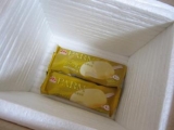 おなじみの赤い箱心の中は、期待ではちきれそう冷凍室にしまわなきゃ!と思い、その箱をあけた 、中にはアイスクリームが二つだった