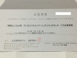 と言っても、まとめるほども、当たってないんですけどねiamebajp/img/user/so/soukou/6087gif" width="16"> こちら、去年の当選分のウイッグです こちらの色違いのです こちらも、去年のお届け分 ここからは、今年分です ホテルランチ券 これ、長野に花火に行く時、途中のトイレ休憩をしたバローでハガキを見つけて、速攻でお菓子を買ってレシートを作ったので、よく覚えています お弁当券1500円分 Twitter当確分 醤油とみりん ジャガイモ1箱 美容針エステと骨盤矯正整体の2つの当選メールがきました 久しぶりのその場系当選 1,000円分ギフト券どこからとは言いませんが、去年「豪華景品が当たりました何が届くかは、届いてからのお楽しみです」的なメールがきていて、妄想に妄想が膨らみ、ワクワクしていて、届いたのがこちらでした いや、1000円分のギフト券、もちろんうれしいですよ ただ、勝手にハードルを上げて、期待しちゃってましたから しかも、ご丁寧に、しっかり梱包して、宅配便で送ってくれましたから 私、貧乏性だから、「送料がもったいないから、普通郵便でいいですよ」って思っちゃうんですよね これは、1000円分のクーポンがあったから、買ってみました こちらは、モニター品です 年賀状は喪中だったので、営業的なお店の年賀状しか来なかったけど、切手シートが1枚当たってました ドラッグストアのポイントの期限が切れそうだったので交換しました 【総レース骨盤ガードル】ブログ10名様モニター参加者募集! 参加中総レース骨盤ガードル にほんブログ村 人気ブログランキング 続きを見る ['close']