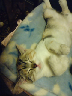 おなかがいっぱいになって、お得意のポーズで熟睡してしまいました きっと、あっという間に大きくなってしまうので 今だけの貴重な可愛い寝姿かなぁ