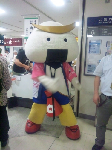 山形宮城物産店でゆるきゃらのむすび丸が応援に駆けつけていましたカメラを向けると手をぶんぶんしてポーズを決めてくれました