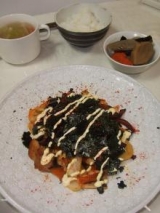 > こんばんはことさちです今日はモニターのキムチを使った一品のご紹介から♪*ノリノリキムチキン材料(2人分)鶏もも肉 180gこくうまキムチとろっマヨ 50gかぼちゃ 1/8たまねぎ 1/4焼きのり 大2〜3枚塩こしょう 少々米粉(片栗粉でも) 大1グレープシードオイル(ごま油などでも) 大3くらいマヨネーズ 適量作り方1)鶏肉は一口大に切って、塩こしょうをふっておく たまねぎ、かぼちゃは千切りにする2)フライパンに油を入れて、かぼちゃをさっと炒めて いったん取り出す3)鶏肉に米粉をまぶしてフライパンに入れて揚げ焼きにする4)鶏肉に火がとおったら、余分な油をキッチンペーパーでふきとり、たまねぎ、かぼちゃ、こくうまキムチとろっマヨを入れて混ぜ合わせながら炒める5)お皿に盛って、火であぶった焼きのりを食べやすい大きさに切ってたっぷり乗せる6)お好きな量のマヨネーズをかけて彩りにパプリカパウダーをかけて出来上がり これは海苔を主役級にキムチを味わいたくて考えた一品です!ノリノリ→海苔乗り「こくうまキムチとろっマヨ」はそれ自体にマヨ… 続きを見る ['close']