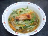 おはようございます連休もあっという間に最終日今日は昨日のお昼ご飯から こちらは料理をされる方なら当然理解できると思いますが、手を抜きたいときなどの、楽ちんメニューですね本来は前日の飲みの影響で二人でだらだらモードお昼はカップ麺でいいよ〜と言われたけど、洗濯くらいしか家事をしてなかったので、主婦として、カップ麺はいかがなものかと(たまには真面目になる)とはいえ、買い物にも行ってないので、材料もない仕方ないので、カップ麺と大差ないけど、「ラーメンでいい?」「何ラーメン?」「しょうゆラーメン!好みの細麺だよ」「しょうゆはあまり好きじゃないんだよね〜とんこつか塩がいいかな〜肉はなくていいから、野菜たっぷりで」(カップ麺でいい、って言ってたのに)ということで、薄めるだけの便利な付属のスープは主役の座を奪われ、できたのがこちらさすがにとんこつって訳にはいきませんでした*焼き鮭 on the 塩ラーメン材料いろいろお野菜 (今回は玉ねぎ、水菜、ニンジン、白ねぎ、もやし)鮭 (時間がない朝用に、焼いて冷凍してたもの最後の1切れ)… 続きを見る