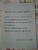 皆さん、こんばんは 今日も大きな地震があったようで、 1か月経った今でも度重なる余震で不安な日々が続いています この度の東日本大震災により甚大な被害に見舞われ被災された方々に謹んでお見舞い申し上げますとともに、被災地の一日も早い復興を 心よりお祈り申し上げます さて、今日のお届けものです 3つ届きました 第39号 会社名:花王㈱さん キャンペーン名:セグレタ シャンプーコンディショナーのサンプルプレゼント 商品名:シャンプーコンディショナー 大量当選かな? 今日は、ゆっくりに入って使ってみたいと思います 第40号 会社名:アヴェダさん キャンペーン名:スムーズ インフュージョン 10,000人プレゼントキャンペーン 商品名:シャンプーコンディショナートリートメント こちらも大量当選の様です 初めて聞く商品なので楽しみです 最後に 第41号 会社名:モニプラさん キャンペーン名:【ベネッセの食材宅配】モニプライベントモニタープレゼント 商品名:QUOカード¥500分 こちらは少し前に当選のを頂いていました 首を長くして待っていました 今日、普通に郵送で届いたそうで開けてみてびっくりしました http//moniplajp/bl_rd/iid12283455844d74356864c9d/m4d2f08059c77f/k1/s0/ 「ベネッセの食材宅配」 こんなプレゼントがあったら注文してみたい! というアンケートに参加させて頂いたものです まさか選んで頂けるなんて思っていなかったので とっても嬉しいです 私は、食材の宅配って今まで利用したことがありません 便利で安心できる食材なので 近々利用させて頂きたいと思います 3社さん ありがとうございます 続きを見る ['close']
