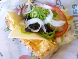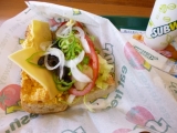 サブウェイのお気に入りサンドイッチは、リーズナブルな日替わりセットの「たまご」+トッピングチーズの組合せ ですサブウェイの日替わりセット「たまご」 +トッピングチーズ野菜は、玉ねぎ以外全て増量でお願いしたから、もはやサンドではない(笑)野菜たっぷりすぎで、「たまご」が見えない?よく見ると、チーズの下に見えます見えますwwパンはトーストしてもらって、ドレッシングなし、塩こしょうで(←店員さんのおすすめ)サブウェイらしく野菜はたっぷり!半熟たまごとチーズの相性ばっちりで、美味しすぎです野菜のサブウェイ『直火焼きタンドリーチキン』無料お試しモニター募集!! ←参加中野菜のサブウェイ『粗挽きソーセージ』無料お試しモニター募集!! ←参加中 続きを見る ['close']