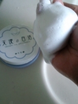 ジェイウォーカーさんの 新商品『天使の白活練り石鹸』 を試しました 35g 1480円(定価)です もっちり生クリーム洗顔で輝くシロへ 『白活宣言』 です とてもデリケートな石鹸ですので雑菌や水気を防ぐ為、乾いた手で適量(さくらんぼ大)をとります 泡立てネット等で水やぬるま湯を少しづつ加えながら泡立てていきます 生クリームの様なもっちり泡が出来上がりましたらお肌をこすらないように、泡の上から撫でるような感覚で優しくマッサージします 水かぬるま湯でしっかり洗い流したらタオルで上から優しく抑えるように水気を拭き取ります まず乾いた手で取らないと雑菌が交ざってしまうというのにとても繊細な石鹸なので肌にやさしいのがすごくわかりました 石灰っぽい感じのさわり心地ですこしねっとりしています 徐々に水をくわえてなめらかな泡にしていきます 本当にやわらかい泡でふわふわ感を感じます泡で洗うようにやさしく洗うので不要な汚れだけを浮かして洗うというような感じです 泡切れはすごく良くてさっとあわが流れて、洗い上がりはしっとりしますそのあとにつるつるな肌の感じになります 私は顔と首の色味が多少違うのです顔が暗めの色味で首元は白いのでファンデーションの色がなんとなくしっくりこないのが悩みなのですが、少しくすみが取れている感じがします 天使の白活を使って顔にパッと明るく白さが出ればいいなと思います 使い続けてだんだん美白に近づければと思います jaywalkerファンサイト参加中 続きを見る ['close']