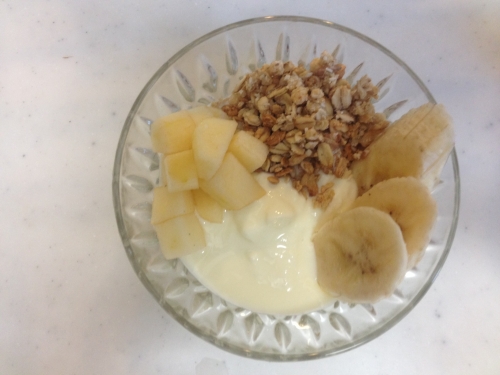 今日はイージーヨーのヨーグルトに グラノーラとフレッシュフルーツをトッピング♪ ヨーグルト自体に甘みがついているから そのままでも十二分においしいよ!