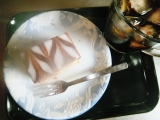 チョコのマーブルケーキに、チョコレートがかかっていて、チョコケーキ好きにはたまりませんねはちみつと書いてあるように、すごくはちみつの甘みを感じます