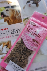 頂いたので早速ネコズに見せてみるとまずは、もにゃんが飛んできました(あまり新しいモノに興味を示さないもにゃんにしては珍しい反応でした)(ちょっと顔コワイですよ、もなかさん(^▽^;))お皿に入れてみましたくんくんまずは香りを確かめてペロン♪そしてもぐもぐひとりで全部食べてしまいそな勢いだったので半分ぐらいからクッキーにタッチクッキーはもなかよりもスゴイ勢いで食べておりましたまたたびが入ってるせいかうちのネコズには好評でしたPETTYさんのネットショップで時々お買物するのでその時にこのオヤツもポチっとしようかなと思いまふ(´ω`)成分表はこんな感じうんPの匂いが軽減されるとからしいのだけどこの一袋を2にゃんで分けて試したのでその変化にはあまり気付かなかったです(^▽^;)ペット用品通販 ペピイファンサイト応援中 続きを見る ['close']