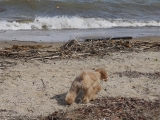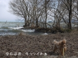 今日は朝起きたら車に雪が積もってた 晴日(はれひ)地方いつの間に? オヌシやるなって感じでした(笑)さて昨日 人のいた松林の公園早々に終了して 藤棚の公園に向かったのですが久々んで テンション上がるんやろな?と思いつつ少しジラス作戦「晴日待って!」下からの風が凄いのか? 晴日のワクワクが持ち上げてるのか? 耳が(笑)しばらく じっとジラシテたら確かに! 持ち上がる耳も風のせいだと判明♪春は芝生 夏は草畑の場所なんですが さすがに冬っぽいです夏での楽しみ方の様子は → コチラ下に降りれた晴日は ジラサレテた分 しょっぱなからMaxの 弾けっぷり ふふふホントに嬉しいみたい (≧∀≦)=3進んでいくと 風船がドコからか飛んできたようで 浜に不時着してました気になるようで チェックに行く晴日隊員 したら ぶわぁっと風がそうそう ヤッパリこうるなるねんな?(笑)風船攻撃にヤラレタ晴日砂浜も恐々チェックです (≧m≦)ぷっ今日は波もキツイし 確かに少し怖いかもお願い今日は濡れんといてな?続けざまのシャンプーは ご勘弁ください浜をグングン進んで 端っこまで行ってみました突き当たりの秘密基地の入り江は水かさが増して 以前とは様子が違う (^^)以前様子は → コチラこんなに あっちもこっちも違うなんて四季って凄いな!ビバ ニッポン♪ あ!最終的にはこんなことになってましたヶドね? (笑)端っこで気づいたのですが藤棚の公園の先にも公園ありました晴日は気づいてないんですが今日は晴日的端っこでユーターン また季節のいい時に探検隊を編成して冒険してきます♪【K+dep(ケデップ)】あったらいいな「セラドッグ グッズ」!! ←参加中 続きを見る