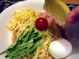 また当たっちゃったモニター当選宝くじもこのくらいのペースで当たってほしい!(≧ω≦)b揖保乃糸で有名なはりま製麺先回は中華でしたが今回は冷やし中華w抜群な時間差攻撃暑くなりつつある新潟県には助かるモニターっでした頂いたのはこんな感じ乾麺で1人前80グラム少し麺が少ないかな~って感じの量腰のありそうな細麺を茹でまするスープはサッパリしながらもゴマ油がアクセント今回作ったトッピングじゃん出来上がりサッパリとレモンを絞って頂きました!(≧ω≦)b頂ける幸せ 揖保乃糸も播州乾麺も はりま製麺ファンサイト応援中 はりま製麺株式会社 職人気質/冷し中華 続きを見る