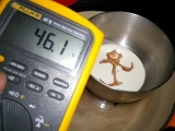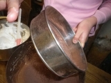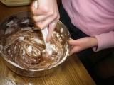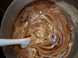 Drスダに注文しておいたバイクのスッテップ(折れたから)を取りにバイクで町田まで往復した日曜日の午後、花粉の攻撃にさらされ目は悲惨な事になっていた(この時oyajiさんにニアミスしたらしい青葉警察署の交差点かな?)チョコケーキが食べたい花粉で腫れた瞼を擦りながらキッチンに向かう前回のチョコケーキはガツンと重いガトーショコラのクラシックバージョンだったから今度はスフレタイプでソフトなチョコケーキにしよう奥さんが外出でオーブンが空いている今のタイミングが勝負だ!アシスタントを呼びたい所だが生憎出掛けている学年末になり担任の先生に千羽鶴を皆で折って渡す事になったらしく友達の家に鶴の製作に行っている仕方ない、一人で作るか今回は湯煎焼きをするガトーショコラ、グランマルニエショコラだレシピは先日のガトーショコラの本から(コピーレシピなので著作権の問題から分量の記載は控えさせて頂きます)チョコチップと無塩バター、生クリーム、卵黄、卵白、グラニュー糖、そして薄力粉とココアを用意したおっとリキュールを忘れていたグランマルニエを探すが生憎無いようだ仕方ない他のリキュールで代用しよう(と言う事はグランマルニエショコラじゃなくなるな)奥さんのチョコリキュールを引っぱりだしてきたこのリキュールは何だろうMozart Liqueur と書いてあるということはGateau au chocolat et Mozart なのか?オーブンを180℃に予熱して、卵白は冷凍庫に入れて冷やす薄力粉とココアは三回振るって、グラニュー糖は一回振るった湯煎にかけてチョコとバターを溶かそう湯煎の温度管理はしっかりとしなければならない今回の温度計はDMMの温度計理科の授業で使う昔ながらの温度計の方が味わい深くて好きだが、奥さんがキッチンのレイアウト変更をしたせいで何処にあるか判らない仕方ないからこれをつかったチョコを溶かすのは50℃だ、まだ高いな、ちょっと水を加えよう50℃になったらチョコとバターを入れて溶かす生クリームにリキュールをあわせて、これも湯煎に乗せてから温度を確認した目標値は40℃おっと、一寸温度が高かった、急いで水を加えて40℃に卵黄にグラニュー糖を混ぜて泡立てる良く泡立ったら溶かしておいたチョコ+バターと生クリーム+リキュールを投入良く混ざったら、この状態で湯煎において保温すると、玄関が開く音どうやら下の娘が帰ってきたようだうやむやのうちに引きづりこんだ冷凍庫の卵白を出してグラニュー糖と合わせて泡立てておいて!しっかり、よく泡立ったかメレンゲの1/4を投入して良く混ぜよう薄力粉とココアを振るい入れて、良く混ぜる混ざったら残りのメレンゲを投入して良く混ぜる型に入れて、湯煎において、180℃で35分焼いた焼き上がりフワフワだぁ!なんかチョコリキュールの香りってピンと来ないなラム酒を上に塗り込むか型に入れたまま粗熱を取って冷えたらラッピングして冷蔵庫で寝かそう味を出すのに一晩は寝かさないといけない理想は三日月曜日の夕食後、寝かしてあったケーキを奥さんに見つけられてしまったまだ寝かし足りないと思うし、チョコケーキは2時間以上室温に放置してから味を確認したいところだけどまあ一寸だけなら良いかとりあえず味見をする事にした生クリームをホイップして添えて、紅茶をいれて重いガトーショコラクラシックに比べて軽いからいくらでもいけそうだ口当たりもネットリよりふわって感じが勝るふわっとしながらもチョコのしっとり染みた味わいやはりチョコケーキは満足度が高いな味見程度のつもりが1/2なくなってしまったhttp//moniplajp/bl_rd/iid12614391614d588fdf32e75/m4d769f4a67a8e/k0/s0/ 続きを見る['close']