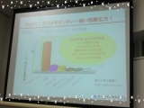 こんにちは( ´艸`) 昨日は、浜松町までアンチエイジングのお勉強にいってまいりました ちょうどお友達もイベントに参加するので、 一緒に行ったよ 7時からだったんだけど、6時にはついてたので時間まで、お茶しに スタバへ 恋 ストロベリーなんちゃらがもうすぐ終わってしまうって言われたので、 2人そろって、ストロべりー ゆーちゃんは、トールサイズ 私はショートにしたよー 時間になったら、テクテク会場に向かったよ 芝大門を通過して東京タワー久々に見ながら進み駅から8分くらいかな?? 会場に着いたよ 今回長く描きますお時間ある方や主婦の方、美容に興味ある方は是非見てみてください 今回のお勉強会は、 『株式会社 ナチュリルさまから』 美活力アップさせる食事法 アスタキサンチンについて 最初に、 美活力アップさせる食事法 を教えてくださった先生は、 とっても綺麗な(肌もスタイルも) 金沢和味先生金沢先生について詳しくは→★ 栄養学や運動生理学に基づいて色々教えてくださいます まずは、 1、いつまでも若々しくいるための栄養ポイント ①すべての栄養素を過不足なく採る 特にタンパク質は美の為にしっかり採ること自分の体、肌などの土台に必要となるのはタンパク質なので、重要だとのこと タンパク質を取っただけではダメ 適度な運動も必要なため、心に負担がない程度の運動をこころがけよう(電車では階段を使うとか最短ルートで行かず余裕があるときは、遠回りするとか) ②食物繊維、プロバイオティクス、水分を適量摂る 納豆やオリゴ糖採る ジャンキーな食事だった場合、何か1つでも食物繊維をプラス(ココア、サラダなど) ③抗酸化作用のある食材を摂る ビタミンA C E を一緒にとる 特にナッツは、ビタミンEで中性脂肪を下げる働きもあるため、 1015粒とると、1日の80パーセントのビタミンEはとれるそうです おやつをナッツに変えようかな??(笑) そんなためになるお話を聞いた後、 2、調理にする損失を抑えるテク を教えてくださいました( ´艸`) ①水溶性ビタミンは光や熱に弱いので、 長時間煮込んだり、冷蔵庫で3日放置するだけでも80%まで下がってしまうそうなので、 先生は新鮮な野菜は新鮮なまましようして、 余計な買い物はしないようにしているそうです なので、使わない予定の野菜はできるだけ買わず、一番いいのは蒸し料理だそうです ②カリウムは煮ると30パーセントなくなってしまうので、 汁物(味噌汁など)に入れるといいそうです ※アルコールととるとカリウムはだめになってしまうらしいです カリウムとるにはサトイモを蒸したものとかもいいそうです ちなみに 吸収しにくい栄養素は カロテン 油を足してカロテンの吸収をしやすくする カルシウム ビタミンDを一緒にとる 鉄 鉄分のなかでもレバーやウナギは吸収がいい(とりすぎはダメ) レバーとビタミンCを一緒にとるといい(レモンなど) そんな素敵なお話を聞いた後、 なんと、なんと、なんと お弁当タイム Midorie さんのお弁当です 鶏の胡麻香り揚げ 海老と豆腐の揚げ団子 あんかけ 青菜ときのこのおかか和え 有機にんじんと大根のハニージンジャーまりね 旬野菜のスペインオムレツ デリ 香の物 イチジクワイン煮 玄米と胚芽米の2色ご飯 こーんなに沢山入ってるのーヘ(゚∀゚)ノわーい 私ってあんまりバランスのいいお弁当とか食べないんだけど なんかおいしくないイメージ でもこのみどりえさんのお弁当私ったら完食 お野菜のしっかりしたお味と、ちょうどいい味付けが私好み 自分の為にも旦那の為にも食生活見直そうと思いました 私たちが食べてる時間も和味先生はお話をしてくださり、 からだと美容にいい、レシピを教えてくださったりしました 今回アスタボーテのサプリメントをいただいたのですが、 カプセルなので、 カプセルが苦手な方や旦那様やご家族の方も一緒にとりやすいように、 このカプセルをとって粉末を使ったレシピです レシピをいただいたのですが、 今日は時間がないので、夕飯に作ったカレーに私も入れてみました(笑) 入れる前 入れてます 入れた後 混ぜちゃえば、カレー自体色が濃いから、目立たない少しオレンジ粒粒みえたけど(笑) さて、お弁当も食べて満足しちゃってると(笑) 今度は休憩後、 アスタキサンチン&アンチエイジングのお話 肌を老化させないためには、 健康なお肌を育てること=肌の細胞が元気であることが必要です 肌のたるみなどが気になるときは、 肌の表面ではなくちょっと下の部分(肌の弾力とかを保つ場所) のなかの繊維芽細胞(肌の弾力や柔らかささどを出すところのお母さん的存在) のケアをするのが大切だそうです この繊維芽細胞はだめになってしまうと再生はしないそうです なので守ってあげて、繊維芽細胞が元気な状態を保つのが、肌健康につながるそうです (お母さんが健康でなければ、私たちがうまれないみたいな感じ) 肌の老化は、 遺伝子的要素ももちろんですが、生活的要因も老化を加速させるようです 双子のかたの実験で紫