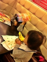 ご飯がきた時には抱っこ魔になっていてパパとママと交換しながらの食事