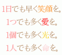 地震から今日で2週間地震、津波、放射能…と二次災害、三次災害…と後が耐えなくて不安な日々日に日に増えていく死者行方不明者の数や、悲惨なニュースに胸を痛めることも多いけど、こんな中自ら進んで原発に向かった勇敢な東京電力社員の話や、自衛隊の話、10日ぶりに救出された少年とおばあさんの話など、感動の涙を流すことも多かったこの震災で私が思った事日本人の結束力はすごい!!ってこと節電や募金、帰省難民に食べ物を配る人やトイレを貸すもいたり、いろんな人の思いやりが目に見えて感動して、改めて日本人で良かったなって思いました買い占めやガソリン渋滞など、がっかりすることもあったけど…このブログやmixiを通して被災地で頑張ってる方々を見て、私も頑張らなきゃ!って思ったし、いろいろなありがたみに気づいた停電が終わって電気がつくと、電気ってありがたいなって思ったり、何より生かされてることがありがたい本当にいろいろなものや人に感謝無事に1日が終わって、また朝を迎えられたことに感謝です家族が元気でいること、当たり前じゃないんだよね家族を、自分の子どもを命を懸けて守りたい無駄遣いはしない毎日笑顔でいたい最近こんな風に思ってますそして、本当に本当に1日でも早く平和な日々が戻ってきますように!!!Pray for Japan★melon★