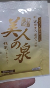 どもー/> 今日もお疲れ様です 2人暮らしだといつもお風呂はシャワーだけになりがちだけど、 やっぱりお風呂に浸かると疲れも取れていいよねー てなわけで 今日はこちらを入れて、早々入浴タイム 美人の泉絹肌プレミアム ネーミングがまたぜひ入ってみたくなる入浴剤だよねー 効果を確かめるべく早速入ったがなー 中身は固形ではなくて、普通のというか粉の入浴剤 この中身、何色だったと思う あたしはねー、このパッケージっぽい色を想像してたんだけどもー キレイなみどり色じゃったー この入浴剤は、酵素入りの薬用入浴剤で、 古い角質や毛穴の汚れをきれいにしてくれるという美肌には欠かせない役目を果たしてくれるんだって だから、『美人の泉』って名前なんだね だから、キレイにしてくれる→老化の原因でもある角質を取ってくれるのでエイジングケアにも しかも加齢臭などの体臭除去や、温泉効果でダイエット効果も期待できるんだってさー 香りは強すぎず程よいいい香り 癒しの香りですな 何の香りなんだろうなー なんだか安心する香りでしたー 実際に入ってみて感じたのは、とにかく体があったまること しかもすーごいあったまりすぎた感はなくって、長くゆっくりと入ってられるかんじ あとは、お湯の感じがなんだか軽い?やわらかい?ようななんともいえない 心地いい感触でした あたしが期待してる効果がさらにあって、デトックス効果とムクミ解消効果です 芯から温まるので血流が良くなるし、そうすると発汗作用があがってデトックス効果、 ムクミ解消効果も期待できるそうなのでぜひ 香りに癒されつつ、心地いいお湯にゆっくり浸かってられるので、 続けられるしお風呂が楽しみになります ラブリーハニーファンサイト応援中 続きを見る