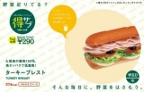 『ターキーブレスト』七面鳥の胸肉を100%使用した、高タンパク質で低脂質、サブウェイならではのサンドイッチです高タンパク質で低脂質、しかも野菜がたっぷり摂れるなんていいですよねそれにとっても美味しそう(´ー`)。・・是非とも食べてみたいサンドイッチです【野菜足りてる?】『ターキーブレスト』無料お試しモニター募集!野菜のサブウェイ 続きを見る ['close']