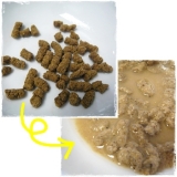 嬉しいものがモニプラ さんから届きました 国産、無添加、低アレルギーのフード シェ フ ド ッ グしかもたっぷりの500g ヾ(@^▽^@)ノ 国産、無添加、低アレルギーというのはポイント高いですよね 食物アレルギーで悩む大切な愛犬の中には、 大量に添加されている化学物質による影響を受けている場合も少なくないとのこと ((>д<)) 酸化防止剤、合成着色料、防カビ剤、また人工的に抽出した科学的な添加物を摂取し続けるのかそれとも カラダに一番の影響を与える食事はすっごく重要 大切な大切な我が仔にはいつまでも健康で長生きして欲しいですものね 馬肉、仔牛、オーストリッチ、チキン、フィッシュなどいろんな種類がある中で ママはいろいろ入ったオールミックスをチョイス 小粒、大粒とサイズを選べるのも嬉しい 粒が大きいと予め砕いたりしないといけないので面倒なのよねぇ ヽ(;´ω`)ノ そして何よりも嬉しいのは アイナーーっ まだでしょーーーーー しかも袋の上から (=`(∞)´=) おっと取り乱しました 気を取り直して シェフドッグは仔犬、成犬、老犬を問わず、全犬種に対応したドライフードなのです 今の我が家のように仔犬と成犬がいる家庭では2種類のフードを置かなくてはいけません それがひとつで済むなんて すっごくすっごく メチャメチャ ありがたいです そしてもうひとつありがたいポイント アイナはまだ若干ふやかしたフードを与えているのですが、 食いしん坊娘はふやかしている時間が待ちきれない でもこのシェフドッグは すぐにふやけるの アイナにもいいけど忙しい時のママにも大助かり ハンターが狙っているようなのでさっそく、、、 秒 殺 で す ( ̄* ̄ ) アイナさんもオススメのようです 生肉を約50%も使用しているので、 美しい体格やコートに必要な、動物性蛋白質や脂肪を充分に含んでいるとか (o^')b 成長期からしっかりと食事を取っているかが10年先シニアと呼ばれる年齢になった時大きな差となるものね 是非是非試してみてください シアン シアンファンサイト参加中 CHIENCHIEN(シアンシアン) 続きを見る ['close']