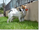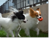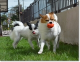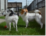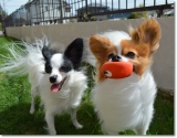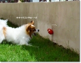 台風一過で、お天気 急激に回復した 連休最終日の午後 一転 あお空 台風は、びゅんびゅん風を 残していった 公園は、まだ地面が湿ってるかもしれないから、とりあえず お庭ドッグランで、がまんっ ( ドッグランってフツーのお庭っす )強風に立ち向かう 勇敢な(?) こてきら お毛毛がパッカーーンっ 新種の生き物ちっくでヘンなのっ パ、パピヨンには、見えないっ キツネさん & ちっこいウシさん こてつの たまごちゃんは、このあと きららに奪い去られたのだった取り返せない ヘタレ 優しい アニキ 壁に ぺっタン子の たまごちゃんに、ケンカを売ってみる こてつデス❤ ウスゲのボク達にも 風になびく お毛毛はあるんだよっ(^v^) おぐしが 乱れても、ちょちょいのちょいで 元通りなんだよっ ウスゲだからねっ(笑)WebMoneyポイント(TOLOT1冊分)をもらってフォトブックをつくろう! 続きを見る