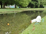 6月に入り、ムシムシッとする日が多くなってきたこの頃本日もどんよりお天気梅雨入りも間近かあっ 4月にダニに、がぶりっとされてから、今年は1か月に一度、ちゃんとフロントラインする っと心に誓った、ワタクシ 昨年は、正直数回程度いい加減な感じだったっ フロントラインしてるとはいえ、草むらは避けたい心情 でも、わんこたるもの、サラダバー命ですからやっぱりこてつも入って行こうとするのだっ わんこ用のアロマで虫よけスプレー 今年もモニターでお試しでっす ペット用天然アロマの虫よけスプレー 『 アンチノミカ 』ノミ、ダニ、蚊など虫よけ作用の強い10種類の精油をブレンド 天然成分100%、合成香料着色料保存料等は一切無添加とか やっぱ、自分の愛犬には、食べものにしても、グッズにしても,なるべくなら、安全なモノを使いたいっ まずは、空中にシュッ 香りはどうかなっ くんくんこてつチェックちゅうっ くしゃみもなく、大丈夫そうアロマの香りが、ちょっこしきつめかなっ では、こてつに、シュッ とりあえず、上の方から全体にかかるように1吹き はげしく、スリスリーーっ 効果なくなるぢゃんっ もう一吹きして、速攻でお散歩に GOGOっ 日曜日ダンナっち、仕事カンケーのお客さまとゴルフ 早朝出発だったので、こてつとワタシも、早朝お散歩でっす 学びの森まで、てくてくウォーキングぅ ついでに、近くの図書館に本を返却するため、ちょっこし遠回り こてつは、なにげに学びの森までのルートを覚えているので、いつもの曲がり角をスルーしたら、何度も何度も振り返っておりましたっ 川沿いをてくてく春は桜並木だった道も、今は濃い緑 はいっ、立ち止まってっ JR通過っ はいっ、名鉄通過っ はいっ、図書館、到ちゃっく 時間外の返却場所へお待ちかねの学びの森っ ここに、たどり着くまでに待ちきれず、ちっこい芝生見つけては飛び跳ねてたこてつ じらされたからねーーっ やっと遊べるよっと、オレンジボールをぽいっ 必死っ 取ろうにも、ビミョーに届かないお水嫌いなこてつも、ボールのため、入ろうとするしっ ちょこっと流れがあって、しばらくすると取れる位置まで戻ってきた とったどーーっ !! ってワタシが取ってあげたのだよ、こてつクンっ 『 ゆかぶぅのコントロールミスぢゃんっ 』『 こてつのキャッチミスぢゃんっ 』どっちでもいいぢゃんっ さっき、庭で蚊に刺されたよぉ アンチノミカパワーにご期待でっす こてつデス❤ 日曜日の朝さんぽは、結局2時間コースだったよ(^^) そのうち、学びの森で1時間 ゆかぶぅは、動いてなかったけどねっ^m^ さすがのボクも、お腹すいちゃって、朝ごはんモリモリ食べたよっ!! ランキング参加中♪ ♪ポチっとお願いしまっす!! ↓↓↓↓ にほんブログ村 アロマスター|ファンサイトファンサイト参加中 続きを見る ['close']