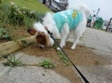 先週末、新潟のおじいちゃま、おばあちゃまの家へ法事のため行ってきましたっ 毎年、妹のドリコと2人で、9月に新潟(母方)と富山(父方)の家へお墓参りに行くんだけど、今年は新潟のおばあちゃまの7回忌というコトで、実家の家族4人でひさびさにお里帰りデス 色んな都合上、18日(木)の夕方からというコトで、ダンナっちは仕事のため行けずこてつはご一緒でございまっすぅ 今回は、おばあちゃまん家っというか、今は、おぢちゃまん家にお泊りっ こてつは、おぢちゃまの家には行ったことはあるけど、泊まるのは初めて大丈夫かなっ ???一応、気休めの抜け毛対策に、Tシャツも着せてみたりしてっ カワイイ こてつは、『 NO わんわんボーン NO Life 』 だからねっ 新潟といっても、富山県に近いトコでも、それなりに遠い 東海北陸自動車道をひたすら北上 この日のお天気予報は下り坂日本海側は雨だと だんだんと、視界が悪く 真っ白おっ いつもなら、青々とした山の風景を見ながらのドライブのはずが 途中、休憩のために寄った “ ひるがの高原SA ” 寒いくらい ここも、いつもならこんな感じなのになあっ!! ( ↓ 以前の写真)このSAには、わんわん広場なるドッグランがあったけど、お先を急ぐので、スルー おトイレと、冷たいお水を味わって、さらに車でGOGO まあまあ、こてつのオチッコと、それなりのお歳のお母ちゃまのおトイレ事情のためちょくちょくSAに寄ってねお次は、富山県は呉羽PA ここに寄ったのは、お父ちゃまの希望富山県出身のお父ちゃまは、雄大な立山連峰を誇りに思っているのだっ お天気が良いと、それはそれは綺麗なお山が見えるんダケド残念でしたぁ お次の休憩は、有磯海SA ちょっとした散策エリアもあってワンコ連れのヒトもちらほら恋人の聖地とかいう2人で鳴らすであろう鐘が鳴らしてみたっ!!案の定スゴイ音でビビるこてつ ワタシとドリコは、ちゃっかりとお腹も満たし “ 蜃気楼ソフトクリーム ” だって富山県の魚津の辺りでみられる蜃気楼から付けたんだろうなっ海洋深層水と岩塩を使ってるんだってさっ ちょっと、塩味でさっぱりとしてウマッ 舌びろんのこてつとにかく、有磯海は蒸し暑かったっ あっ、ソフトクリーム欲しかったぁ ???ひるがの高原とは大違いっ ソフトクリームも、どんどん溶けてたれちゃうしっ 富山のおばあちゃん(父方)の家は、新潟県に近い富山県まず、お墓参りに寄りましたっ 田舎っ、すぐ後ろは山 近くには川もあって、ちっちゃい頃は自然の中の遊びがオモシロくって夏休みは楽しかったぁ おばちゃん家に寄ったら、東京のいとこが帰省中 こてつは、ワンコ好きの一番下の息子ちゃんに、ちょこっと遊んでもらったよん こてつは、このロディちゃんが怖くってビビり気味デシタ おばちゃん家にサヨナラして、そろそろお昼タイム 日本海沿いをはしる国道8号線の富山県と新潟県の県境辺りを走るとよく見る “ たら汁 ” の文字っ !!大衆食堂みたいなところなんだけど、このたら汁がオイシイのっ たら、ごぼう、ネギなどが入ってて味噌で味付けたらの骨や肝や白子などなどオイシイだしが出ててウマシッなのでございますっ 満足、満足っ こてつには、車の中でお留守番っ注文を頼んでおいてもらって、ギリギリまで車は冷房つけて外が比較的涼しかったのも、良かったよ そして、やっと、やっと新潟県へ また明日 新潟は遠ぉいっ こてつデス❤ 長時間ドライブだったけど、ボク平気だったよ!! 明日は、またボクの初体験のお話もっ ちょっと、しょっぱかったよ(>_ 続きを見る ['close']