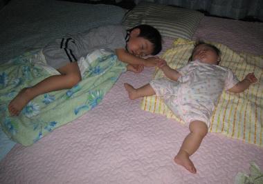 喧嘩もするけど、手をつないで就寝する子供達 夢の中でも一緒に遊んでるのかな(^^♪
