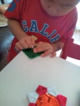 日曜日の幼稚園行事でmiが折り紙コーナーで色々と作っていた中のコマtry11029446787html" target="_blank">★←そのときのブログ 昨日の振替休日で王子が「あのコマまた作りたい!」というので昨日一緒に作りました 王子が好きな色を3枚選んで できました キラキラ 回すとこんな感じ ね、すごいきれいでしょ そしてそれからもまだまだ作る! と言って一緒に でも手先を使うし、折り紙っていいですよね♪ 王子は飛行機を作るのが上手です メリー秋のチョコレート祭開催第二弾はチョコレートたっぷりのミルフィーユ♪ ←参加中 続きを見る ['close']