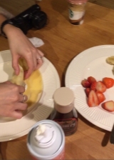 webkittaphighlightcolor rgba(0, 0, 0, 0);">昨日、お友達がわざわざ我が家まできてくれたので、クレープでおもてなし♡自分たちで生地を焼いて、自分たちでトッピング!用意したのは、薄力粉とグラニュー糖と牛乳と卵を混ぜた生地、カットイチゴ、バナナ、自家製りんごのコンポート、みかん缶のみかん、ザーネワンダーの生クリーム、ハーシーチョコシロッププッシュするだけで生クリーム(生地は焼いてから冷ましておくって忘れてました!そういえば、クレープ屋さんはそうしてた焼いてすぐ巻いたら、生クリームが若干とけたりもしましたが笑、楽しくおいしくできました)ザーネワンダー、つかってみたかったのです!ホイップの手間がないし、牛乳由来の動物性生クリームであることもポイントでした絞るだけのホイップは、ほとんどが添加物の気になる植物性生クリームだからといって、赤ちゃんがいるのにわざわざ泡立てるのも面倒だなぁとちなみにドイツ製でしたー500mlとありますが、1000ml相当の生クリームが出るそうプリンや飲み物に気軽に乗せられるから、少し高くても、買ってよかったです!クレープパーティー、またやろう♡ 続きを見る