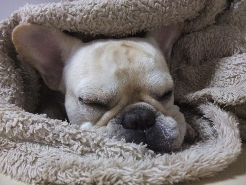 寒い日は毛布にくるまってお昼寝が日課♪気持ちよさそうにいつまでも寝てます