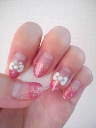 旦那と久しぶりのデートだったので前日に頑張って仕上げました私がピンクが大好きなのでピンクのグラデーションに女の子らしいリボンを乗せました