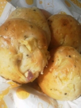 HBでマッシュしたさつまいもと黒ゴマを練りこみ
