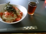今日のご飯はトマトとツナの冷やしそうめんどうしてもトマトが食べたくて、ちょっとだしにもこだわって作ってみた