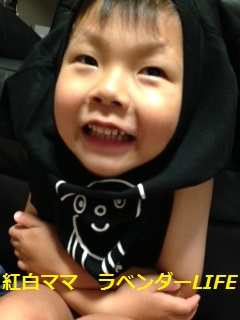 黒いTシャツを被り、顔を出した長男 まさに、うちの「まちなみくん」です!
