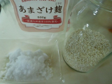 ついにというか、予想通り、本日梅雨入り 一日中、ほぼ雨のお天気でした 九州熊本老舗みそ醤油蔵のホシサンより、素敵な贈り物を あまざけ麹 厳選九州産米100%使用の米麹 で、何を作る ここ数年ブームになっている、「甘酒」です 甘酒には2種類あって、酒粕から作るものと米麹から作るものが 今回は、お子様やアルコールに弱い方でも飲める米麹の甘酒を作ります 難しいんじゃないのって、思われますよね 私もそう思ってましたが 炊飯器で簡単に作れるです *材料(出来上がり1000cc) あまざけ麹 250g ご飯 1合分(350g) 水 600cc *作り方 1、炊飯器を保温状態にし、ご飯水を入れ、水が白くなるまでよく混ぜる 2、60度未満であることを確認して、あまざけ麹を入れ、再びよく混ぜる この後、55度まで上がり 50度から60度の間が、一番美味しくできるので 3、炊飯器の蓋を開けた状態で、濡らしたふきんをかぶせる 4、保温機能で約8時間寝かせる 出来上がり ちょっとお味見を えっ!! お砂糖入れていないのにこんなに甘いんだ 驚くほど、甘い お好みで、水牛乳豆乳などで薄めて 出来上がった甘酒は、密閉容器に入れて冷蔵庫で1週間はもちます つぶつぶが気になる方は、ブレンダーなどで撹拌して お湯か冷水で割って、ホットでもアイスでも 甘酒は、飲む点滴とか言われてますけど 元気も出るし、なんかお肌がスベスベに お砂糖がわりに、お料理に使っても で、もうひとつ以前から作って見たいものがありました 塩麹です こちらも、数年前に大ブームになりましたよね 品薄になって、小さな瓶入りでも結構なお値段でした これも、同じあまざけ麹で簡単にできるということで、早速 *材料(出来上がり600cc) あまざけ麹 250g 塩 85g 水 350cc *作り方 1、あまざけ麹と塩を蓋つきの清潔な保存容器に入れよく混ぜる 2、水を入れて、もう一度よく混ぜる 3、ゆるめに蓋をして、常温で寝かせる 1日1回上下ムラなくかき混ぜて 夏場なら1週間、冬場で10日で出来上がり 麹が柔らかくなってとろみが出てきてます 香りも 密閉して、冷蔵庫で保存しておくと好きな時に使えます 鶏ささみを塩麹に漬けて、チキンカツに こちらも、むね肉を漬けてグリル焼き どちらも、パサつきがちなお肉がしっとり柔らかく 塩麹たっぷり600ccできたので、いろいろ使えますね ホシサンの「あまざけ麹」1袋500g入りですので、甘酒と塩麹両方楽しめました どちらも、材料を入れて混ぜるだけ こんなに簡単にできるとは、思っていませんでした 一つの材料で、念願だった「甘酒」と「塩麹」を手作り出来て大満足 体に嬉しい発酵食品、嫌な梅雨時期を乗り切りましょう 九州熊本の味噌醤油醸造元ホシサンファンサイト参加中 レシピブログに参加中♪ クリックお願いします♡人気ブログランキングへ <a href="https//moniplajp/bl_rd/iid3220659265abb14ad13b22/m4de24b6bd78fe/k1/s0/" rel="nofollow">九州熊本の味噌醤油醸造元ホシサンファンサイト参加中</a><img src="https//mpcharleyjp/bl_imgphp?iid=3220659265abb14ad13b22&m=4de24b6bd78fe&k=1" alt="" border="0" style="border0px;" width="1" height="1" /><img src="https//trackmoniplajp/mp_track/eff_impphp?e=1150326727542befbc5a2a6&m=4de24b6bd78fe&i=3220659265abb14ad13b22&fk=0&kind=1" alt="" border="0" style="border0px;" width="1" height="1" /> 続きを見る