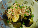 今日も34度暑かった 一度涼しくなっていたので、かえって暑さがこたえます 神戸は台風の影響は少ないようですけど 週末、台風の進路には要注意ですね 我が家は、夏野菜をプランターで育てています ゴーヤとミニトマトは、食べきれないくらいの収穫があります 茄子は2本植えていて、今までの収穫は40本くらいかな? 本日は、3本収穫 揚げ出し茄子にしました *材料(2人分) 茄子 3本(乱切り) 青ねぎ 1本(小口切り) サラダ油 適量 麺つゆ 適量 かつおぶし 小袋1(2g) 大根おろし 適量 *作り方 1、茄子は大きめの乱切りにして水にさらし、キッチンペーパーで水分をとる 2、小鍋にサラダ油を熱し、1を少焦げ色がつくまで揚げる 3、大鉢に盛り、麺つゆをかけ、かつおぶし青ねぎをのせる 4、小皿にとって、大根おろしを混ぜながらいただく 小皿にとって、大根おろしを混ぜた写真がありませんでした 熱々のうちに食べようと、焦ってた マルトモさんより、かつおぶしをいただきました ソフトけずり国内産かつお荒節100%使用 https//moniplajp/bl_rd/iid15558614955d4398fa59884/m4de24b6bd78fe/k1/s0/ レシピブログに参加中♪ クリックお願いします♡人気ブログランキングへ 続きを見る ['close']