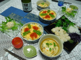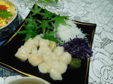 昨日とは打って変わって、快晴の神戸です やはり、お天気が良いと気分も上々 家事も捗ります お布団も干して、朝からおやつの大学芋を作りました(笑) コロナに対する免疫力アップのために、食べる事は大事ですから 旅行も行きたいし、美味しいものを食べにも行きたい でも、今はステイホームですね 昨日の夕食は、娘の贈り物を使って作りました ホタテのお刺身 二人で食べるには、十分過ぎるほどでした 甘くて、とろ〜り ちらし寿司いくらもたっぷりあったので、後から追加でのせましたけどね イクラの赤が入ると、食卓が華やぎます 木綿豆腐のレンチン蒸し餡掛け *材料(2人分) 木綿豆腐 300g(150×2) 戻し干し椎茸 2枚 人参 1/4本 銀杏 8個(茹でて冷凍した物) 白だし 大さじ1 片栗粉 大さじ2 餡 だし汁 150cc 麺つゆ 大さじ2 水溶き片栗粉 適量(好みのとろみがつくまで) *作り方 1、椎茸は細切り人参は千切りにし、椎茸の戻し汁白だしで煮て、煮えたら銀杏を入れる 2、ボウルに木綿豆腐を入れ泡立て器で潰し、煮汁を切った1と片栗粉をよく混ぜる 3、耐熱容器にラップを敷き、2を半量ずつ入れ、輪ゴムで口を閉じる レンジ600wで5〜6分加熱する(固まり具合によって、加減) 4、ひっくり返して器に入れて、トロミのついた餡をかける あれば、緑のもの(豆苗かミツバ)をのせる 簡単にレンチンで出来上がるので良いですよ 木綿豆腐なので、ヘルシーでもボリュームがあります 今回は、熱いのを頂きましたが これから暑くなると、餡のとろみを薄めにして、冷やして頂いても 冷凍していた銀杏がたくさんあるので、たっぷり入れました … 続きを見る ['close']