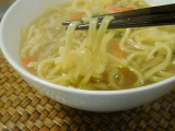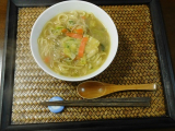 お天気は良かったですけど、風が強くて肌寒かったです 朝はかなり冷え込みましたし お昼前に、宅配便が届きました ハイ!!事前にお知らせが来ていた、アレが届いたんですよ 「なべやき屋キンレイ」の菜宝タンメンです お昼に食べようと待ってました この商品、袋から取り出し、お鍋で温めるだけで出来上がりです お水はいりません スープ麺具材が3層になって凍っています 具材を上向きに、お鍋に入れて最初は弱火で加熱します スープが溶け始めたら火力を上げて全体が、グツグツ煮立ったら出来上がり 丼に移したら頂きます ハイ!!主人用です 私用です 麺がモチモチ スープもコクがあって、美味しい!! で、何と言っても「菜宝」タンメンの魅力は この1袋に、一日に摂取したい野菜の1/2が入っています それも、鉄鍋で炒めた香ばしい野菜です スープは、コク深い塩味 カロリーは思ったより低く、1食あたり319kcal 私が出かけた時の、主人の昼食用にピッタリ お水もいらないので、失敗もなく誰にでも調理できます(主人でも) 野菜不足の心配もないですし まだ冷凍庫に入っているので、私の火曜日のお出かけに際には、これを食べてもらいましょう なべやき屋キンレイファンサイト参加中 レシピブログに参加中♪ クリックお願いします♡ 人気ブログランキングへ 続きを見る ['close']