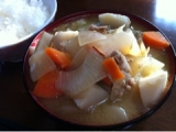 チョーコー醤油さんから届いた お味噌 コレを使って豚汁作りました 近所の方に里芋をいただいたので 一緒に里芋も入れて 豚汁 材料: 使用量 ①人参 1本 ② 玉ねぎ 1個 ③ 里芋 2個 ④ ゴボウ 1本 ⑤ 豚バラ 80g ⑥ 水 500ml ⑦ 味噌 大さじ3 具沢山が好きなので結構具をいれました 作り方: ① 人参、玉ねぎを短冊切りにして、ゴボウは細めの乱切りにして水にさらしておく ② 豚バラは3㎝に切り里芋は皮を剥いて2㎝ぐらいに切る ③ 鍋に切った玉ねぎ人参ごぼう里芋豚バラを入れて中火で炒めます ④ 水を入れ一煮立ちしたら火を止め味噌を 半分 だけ入れます ⑤ 火を付けて具が柔らかくなったら火を止めしばらくおきます ⑥20分ぐらいおいたら味が染み込んでくるので残りの半分の味噌を入れます 火を止めて暫くおくことと、味噌を2回に分けて入れるのがポイントです 完成 まだまだ味噌があるのでまた載せます チョーコー醤油さんから届いた お味噌 コレを使って豚汁作りました 近所の方に里芋をいただいたので 一緒に里芋も入れて 豚汁 材料: 使用量 ① 人参 1本 ② 玉ねぎ 1個 ③ 里芋 2個 ④ ゴボウ 1本 ⑤ 豚バラ 80g ⑥ 水 500ml ⑦ 味噌 大さじ3 具沢山が好きなので結構具をいれました 作り方: ① 人参、玉ねぎを短冊切りにして、ゴボウは細めの乱切りにして水にさらしておく ② 豚バラは3㎝に切り里芋は皮を剥いて2㎝ぐらいに切る ③ 鍋に切った玉ねぎ人参ごぼう里芋豚バラを入れて中火で炒めます ④ 水を入れ一煮立ちしたら火を止め味噌を 半分 だけ入れます ⑤ 火を付けて具が柔らかくなったら火を止めしばらくおきます ⑥20分ぐらいおいたら味が染み込んでくるので残りの半分の味噌を入れます 火を止めて暫くおくことと、味噌を2回に分けて入れるのがポイントです 完成 まだまだ味噌があるのでまた載せます お試しください!チョーコー醤油 続きを見る