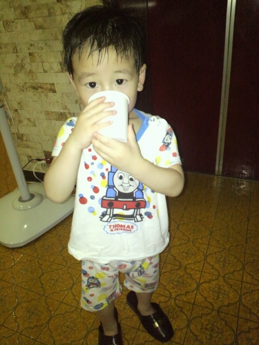 初めての温泉旅行 湯上りに冷たいお水をがぶ飲みしているところです