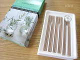 アロマやお香をよく使いますが、 やっぱり気分がリフレッシュできて良いですよね〜♪ これは、 天然アロマオイル配合無着色のナチュラルなお香『Roomytime(ルーミィタイム)』 「オーセンティックハーブ」という爽やかなハーバルブーケをイメージした香りで、 天然カモミールオイルと天然ローズマリーオイルが配合されています とってもリフレッシュできる、 清々しい香り! ハーブの香りのお香は持っていなかったので、 気に入りました♪ 香りって人によって好き嫌いが出るものもあるけど、 この香りなら万人受けすると思います 来客時のおもてなしにもいいかもね〜♪ お香立ても付いてるので、 すぐにカンタンに楽しむ事ができます これ、長さもちょうどいいです 長すぎると、受け皿から灰がこぼれてしまったりすることもあるんですよね これだと安心して使えます♪ のんびりくつろいだり、 気持ちの切り替えをしたりするときにお香はとってもオススメ この香りはスーっとするので、 ついつい油っこいものを食べすぎたり、味の濃いものを食べたりした食後、 胸の気分を入れ替えるのにも効果アリです! 他にも、 食後、なんだかまだ食べ足りないなぁみたいな気分の時にも、 香りで一度食事の雰囲気をリセットする事で、 食べ過ぎを抑えるというような使い方もできますよ♪ (香りを入れ替えて、「食事はもう終わり!」と脳に働きかけるようなイメージです) これらはあくまで私個人に効果があるだけなので、 他の人にも効くのかはわかりませんが(笑) おすすめの使い方です♪ お香は湿度の高い季節に特に香り立ちがよくなり、香りが楽しめるみたいです (初めて知りました!) だから、梅雨〜夏が一番需要が高いのだとか 涼しさを音で感じる風鈴、 水を利用して涼しさを感じる打ち水、 日よけだけでなく見た目にも涼しいすだれ そんな、「夏」を涼しく過ごすための知恵と工夫の一つに、 香りで「涼」を感じるお香も入ってます まだ今は本格的には暑くないので涼感効果はそこまで感じることができないのですが、 夏場、ムシ暑〜〜い時にも香りでリフレッシュできるかな!? そんな効果も期待しつつ♪ Roomytime(ルーミィタイム) 日本香堂ファンサイトファンサイト参加中 blogramにランキング参加中ですので、 よろしければポチっと押してやってくださいませ♪ blogramランキング参加中! 続きを見る ['close']