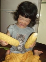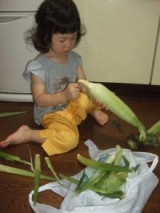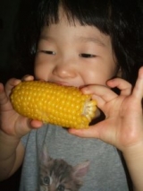 夕方、なかちゃんが山梨旅行のお土産を持ってきてくれたよ!新鮮なとうもろこし!!ムスメ子は、とうもろこしとわかった途端「食べる!食べる!」と皮ごといこうとする食いしん坊ぶりとにかく皮を剥くという事を教え、無心に剥くムスメ子髪ボサボサだね出来たー♪出来たそばから生のまま食らいつくおいおい!まってくれよ次は茹でないと食べられないと教えるも、「食べる!食べる!」の一点張りこの食い意地には、毎日困り果ててしまう…なんとか茹で、あつあつをいただきました!甘い!なかちゃん!おいしすぎるよムスメ子はあっという間に、まるごと1本ぺろっと完食それでも次を狙っているのを察知し、残りは見えない所に隠しましたハイエナなかちゃん、ごちそうさまでした♪ 続きを見る ['close']
