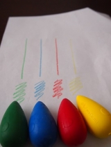使ってみました★シヤチハタ【はじめてのにぎるクレヨン】この度、ご縁をいただきまして、シヤチハタ株式会社さんのクレヨンをお試しさせていただきましたシヤチハタさんと言ったらハンコってイメージですが、文具メーカーさんだったんですね今回のクレヨンはドイツの文具メーカーのファーバーカステル社さんの【はじめてのにぎるクレヨン】というものです3歳の息子はお絵描き大好きで、よくクレヨンを使っていますが一般的な一般的な形のものしか持っていなかったので、こういったしずく型タイプは初めてすごくカワイイ+(´v`)+緑赤黄青の4色セットですヨーロッパの厳しい玩具安全規格をクリアしているそうで、安心して子供に使ってもらえますねちなみに大人が持つとこんな感じ見た目ほどの重量感はなく、軽いです長さは約6cmほど子供が持つとこんな感じです手に付きにくく、折れる心配も少なそうですね発色がとても良いですねチャチャッと書いてみたんですが、キレイに書けました普段筆圧の弱い息子でも、上の写真のようにしっかりと描けていましたよ見た目もカワイイし、もっと種類が欲しくなっちゃいますね( ´艸`)プププただ、ちょっと困るのが収納方法ですねーこういった特殊な形のクレヨンを持っている方はどういう風に保管しているのかな??このままのパッケージに入れているのかな?やっぱりタッパ系に入れているのかな!?(゚0゚)このままだと息子が自由に出し入れできないしなぁとか考えちゃったりして最初から保管できるようなケースに入っていると助かっちゃうなぁなんて思ってしまいましたψ(`∇´)ψシヤチハタ株式会社さん、とても良い機会をいただきましてありがとうございました永く使えるクレヨンなので大切に使わせていただきます!シヤチハタファンサイトファンサイト参加中シヤチハタ株式会社ファーバーカステル特設サイト 続きを見る ['close']