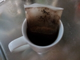 ティーパックならぬ、コーヒーパック!? カップインコーヒー、戴いたのでさっそく試してみました! カップにお湯を注いで、上下に振って3分蒸らす この上下に振る回数で味が変わるそうです 5回ならアメリカン 10回ならレギュラー 20回ならストロング ということで、まずは10回チャレンジ パックが浮いてきちゃて、お湯の中で上下に振るのがなかなか大変 ティーパックみたいにひもがついてるんだけど、それじゃ上下に振れないので、結局パックのすみを持って振りました …味がしない… やり方が悪かったのかな、ってことで、再度チャレンジ 今度はストロングだ!って間違えて50回 ここでやっと味がするようになったけど…インスタントコーヒーと同じ味 これなら時間かけてゴミ出すより、インスタントコーヒーかな… うーん… 「きれいなコーヒー」オアシス珈琲ファンサイト参加中 続きを見る