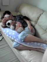 現在の ソファーも抱き枕もブーフのふーちゃんも全部独り占め中 今日は部屋に風がよく入るから気持ちいいなぁ