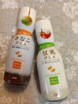 > ドレッシングでキレイ磨き!?作戦 先日、大豆素材を使ったヘルシーなドレッシングSOY Beauty の『豆乳びじん シーザードレッシング』と『きなこびじん 香ばし醤油ドレッシング』をモニターとしていただきましたまずパッケージがシンプルで可愛い見た目も女性が好きそうな感じですが、さらにいいな!というポイントが肌荒れを防ぐ等々お肌に優しい成分などが入った大豆の素材を使って、キレイを意識していることあと、カロリーが低めでヘルシーなところ中身はこんな感じです↓どちらもサラダにかけてみたところ…「豆乳びじんシーザードレッシング」の方は豆乳が使われているせいか普通のシーザードレッシングよりもサラサラ、 チーズの味も感じられるのにあっさりいただけました(^_^)v「きなこびじん 香ばし醤油ドレッシング」の方は写真があまりキレイでないですがf^_^;)醤油で和風な味ですがきなこの粉感のせいなのかすりごまが入ってるみたいでごまドレッシング!という印象どちらも美味しかったです低カロリーだし、大豆の力で肌にも良いとなっなら嬉しいドレッシングだわ(o^^o)HPにはサラダ以外にもレシピが載っていたし、↓↓… 続きを見る ['close']